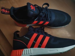 Zapatillas Adidas de color azul marino con diseño de color naranja, semi nuevo. Talla 43 y medio - EU 9 Y MEDIO. EN BUEN ESTADO