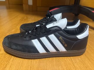 Zapatillas Adidas Spezial en talla 43. Combinan un diseño clásico con detalles modernos. - Parte superior de ante. - Tres rayas laterales en contraste. - Suela de goma. - Detalle Spezial en el lateral. solo un par de usos... como nueva