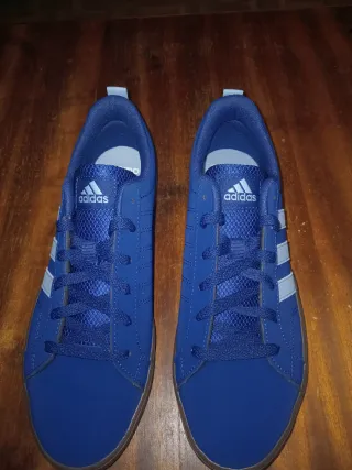 Zapatillas deportivas Adidas en color azul. - Diseño moderno y cómodo. - Cierre con cordones. - Detalles de las tres rayas de Adidas. Precio negociable.