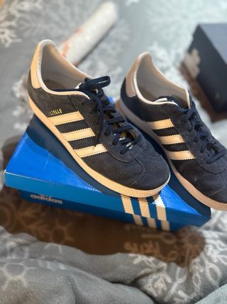 Zapatillas Adidas Gazelle originales en tonos beige, blanco y marrón. - Etiqueta original incluida.