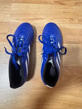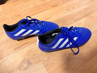Zapatillas deportivas fútbol Adidas en color azul. - Cierre con cordones. - Detalle de las tres franjas blancas. USADAS SOLO DOS VECES.
