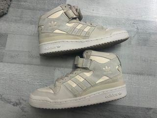 Zapatillas Adidas Forum High en tonos beige y gris. Talla 38 Están en bastante buen estado. Cualquier pregunta no duden en escribirme.