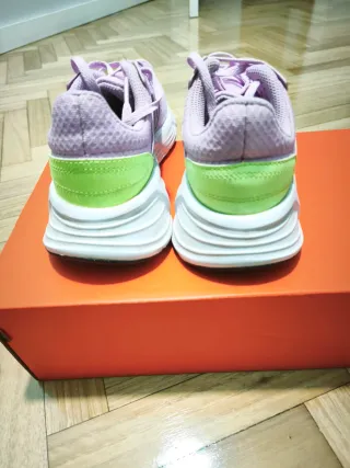 Zapatillas deportivas Adidas en tonos rosas y verdes. Perfectas para el día a día. - Diseño moderno. - Cierre con cordones. - Suela blanca.