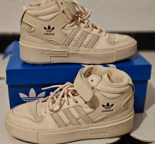 Zapatillas de corte alto en color beige. - Diseño moderno. - Cierre con cordones. - Detalle de las tres bandas. - Logo de Adidas en el lateral.