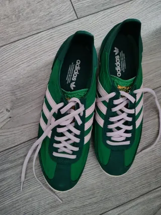 Zapatillas Adidas Spezial con un diseño llamativo. - Combinación de colores verde y rosa. - Cordones rosas. - Viene con la caja de zapatillas de Adidas pero no es se caja original. - Usadas pero en muy buen estado.