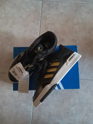 Zapatillas Adidas Drop Step Low – Talla 38 Zapatillas Adidas Drop Step Low nuevas, sin estrenar, con etiquetas originales. Color negro con detalles dorados. Se entregan con su caja original, aunque esta presenta algún defecto estético. Las zapatillas están en perfecto estado, nunca usadas. Detalles: Marca: Adidas Modelo: Drop Step Low Talla: 38 Estado: Nuevo Precio: Negociable