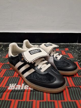 Zapatillas Adidas Samba en color blanco y negro, talla 36. - Diseño clásico con las tres rayas. - Detalle de gamuza en la puntera. - Logo de Adidas en la lengüeta y el talón.