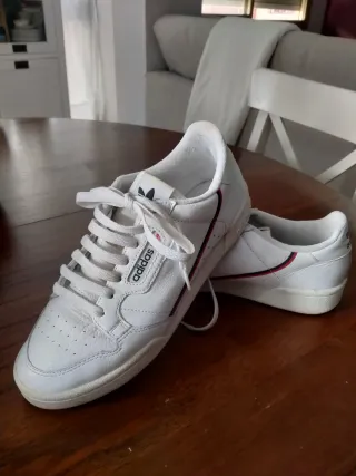 Zapatillas deportivas Adidas Continental 80. - Diseño clásico y versátil. - Detalles en rojo y azul en los laterales. - Cierre con cordones.