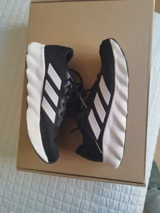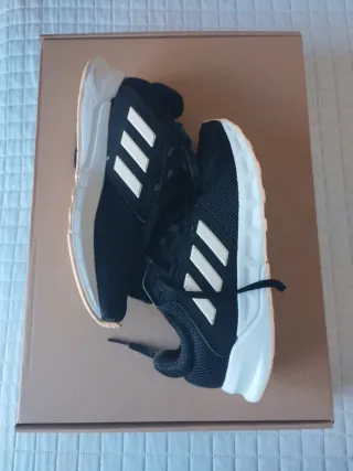 Zapatillas deportivas Adidas en color negro y blanco. - Diseño moderno y cómodo. - Suela con amortiguación. - Cierre de cordones.