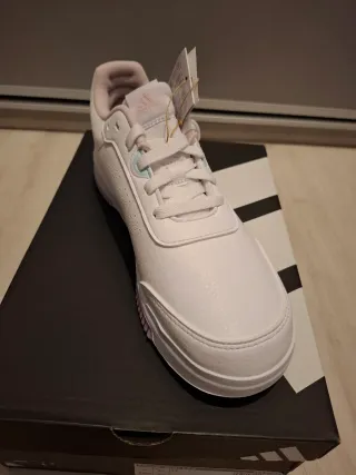 Zapatillas deportivas Adidas Team Court 2 STR J. - Diseño en blanco con detalles en rosa. - Talla 37.5.