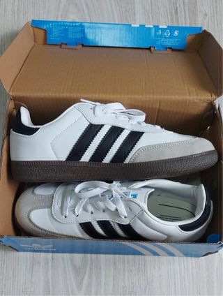 Zapatillas Adidas Samba en color blanco y negro. Sin estrenar, en su caja! Se venden por falta de uso, equivocación de talla .