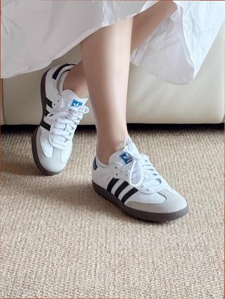 Zapatillas Adidas Samba en tonos beige y blanco. Un clásico atemporal. - Diseño icónico de Adidas. - Detalles en ante y piel.