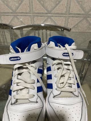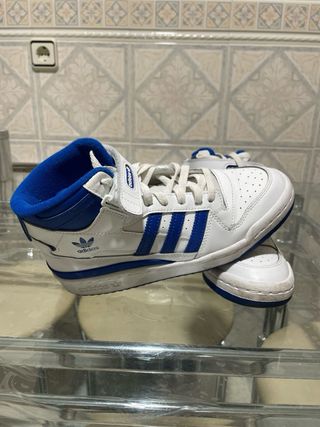 Zapatillas deportivas Adidas Forum de caña media. - Diseño clásico con las tres rayas. - Cierre de cordones. - Detalle del logo Adidas en el lateral.