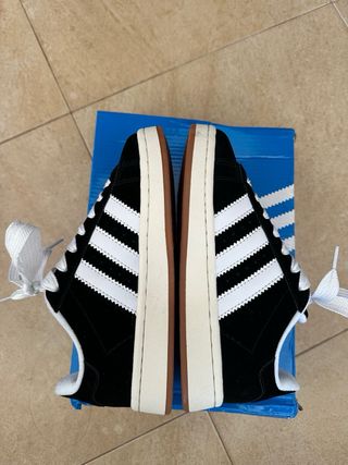 Zapatillas Adidas Campus 00s en color negro con detalles blancos. - Solo usadas una vez - Diseño clásico. - Cordones blancos. - Suela de goma.