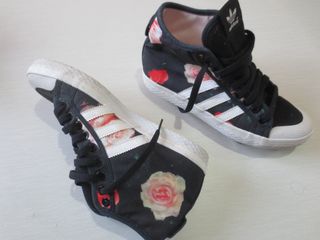 Zapatillas altas de Adidas en perfecto estado talla 38 ( 2/3 )con un llamativo estampado floral sobre fondo negro. Combinan estilo y comodidad. - Diseño de caña alta. - Detalle de las icónicas tres rayas de Adidas en blanco. - Estampado floral multicolor.
