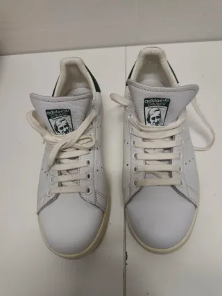 Zapatillas Adidas Stan Smith en talla 39. Un clásico del estilo urbano. - Diseño icónico. - Combinación de colores blanco y verde.
