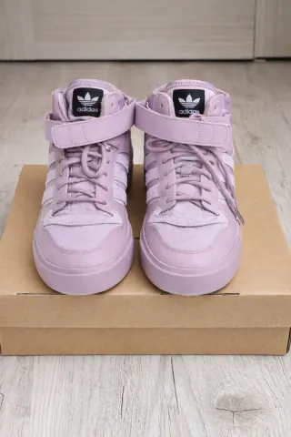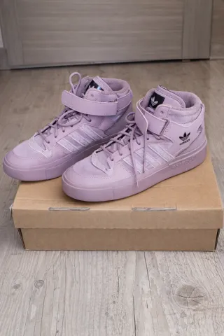 Zapatillas altas Adidas Forum Bonega en color morado. Un diseño moderno y cómodo. - Cierre con cordones y velcro. - Detalle de las tres bandas. - Logo de Adidas en la lengüeta y el lateral. - Usadas dos veces ya que me quedan justas, tallan algo pequeñas. Si quieres mas detalles o fotos me dices. PRECIO NEGOCIABLE