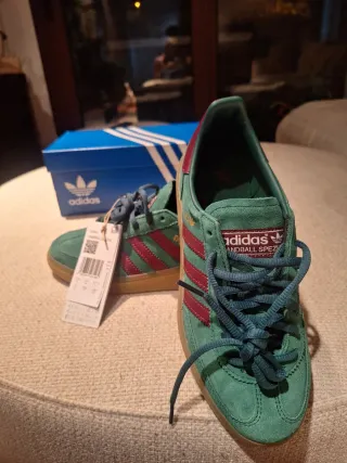 Zapatillas Adidas Spezial en talla 40.5 (equivalente a 25.5cm). El precio indicado es por cada par. - Nuevas a estrenar. - Factura de la tienda Adidas de Liverpool donde las compré estando de viaje. - Se venden por error de tallas y me sale más caro el envío que las propias zapatillas. - No hago envíos porque prefiero que el comprador pueda confirmar que es su talla y no le pase como a mi.