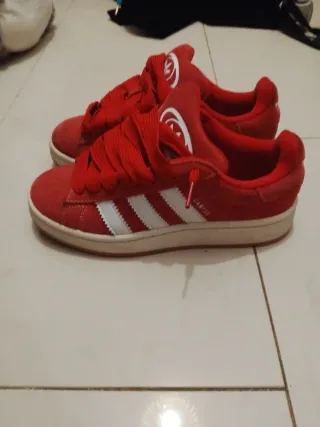 Zapatillas deportivas Adidas modelo Campus en color rojo y talla 36.Originales.Me costoas de 100 eur - Diseño clásico con las tres rayas blancas. - Cierre con cordones. - Logo de Adidas en la lengüeta y el talón.