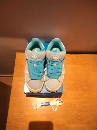 Vendo zapatillas Adidas Campus de color azul y blanco. Son una versión ancha. Están en muy buen estado. Incluye otros cordones más finos también Adidas - Ideales para un look casual. - Cómodas y ligeras. - Perfectas para el día a día. Preferible para mujeres por la talla y por los colores