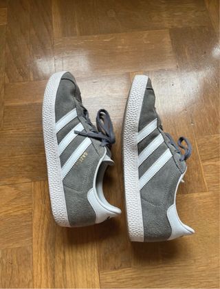 Zapatillas Adidas Gazelle en color negro con detalles blancos. - Logo de Adidas en la lengüeta y el talón. - Suela de goma. - Detalle Gazelle en dorado. -Usadas solo una vez Escucho ofertas que tengan sentido