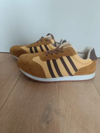 Zapatillas deportivas de estilo retro. - Combinación de ante y material sintético. - Detalle de tres franjas laterales,tipo Adidas - Pone un 41, xo calza como 40, x eso las vendo, me quedan pequeñas