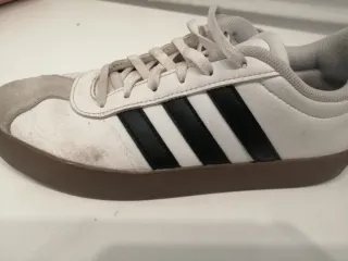 Vendo un par de zapatillas Adidas Breaknet 2.0. Son de color blanco con la suela negra y rayas de adidas en verde, puestas dos dias, son una talla 44 pero en realidad en como una 43, por eso las vendo.