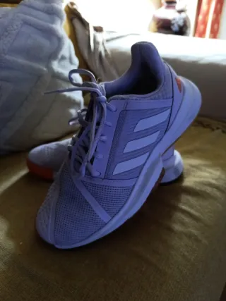 Zapatillas marca Adidas del número 38. Modelo Court Jam Bounce Tiene solo dos usos. En perfecto estado. Color morado suave. Su precio nuevo es de 64€