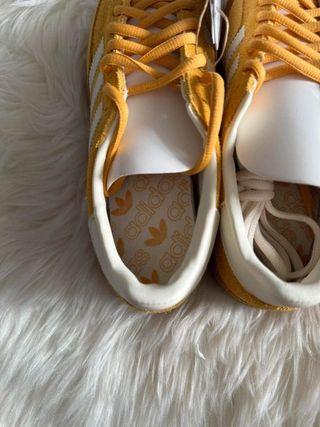 Zapatillas Adidas Handball Spezial en color amarillo y blanco. - Exterior de ante. - Suela de goma. - Cierre de cordones.
