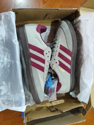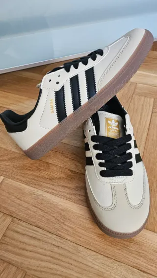Título: Adidas Samba Jane blancas – Talla 36 – NUEVAS con caja Descripción: Vendo zapatillas Adidas Samba Jane para mujer, talla 36, color blanco, totalmente nuevas sin usar, con su caja original. Fueron un regalo pero no le valen, por eso se venden. Modelo muy cómodo y clásico, ideal para uso diario. Marca: Adidas Modelo: Samba Jane Talla: 36 Color: Blanco Estado: Nuevas, a estrenar Incluye caja original Posibilidad de entrega en mano o envío por Wallapop.