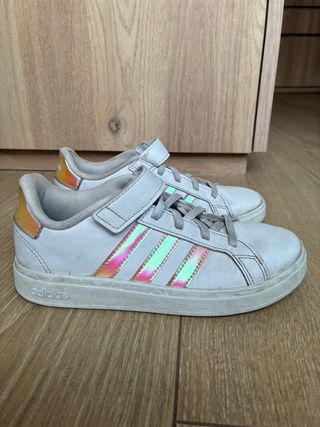 Zapatillas deportivas Adidas en color blanco. Se han usado un par de veces porque tallan justas - Diseño moderno y ligero. - Cierre con cordones. - Suela de goma.