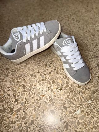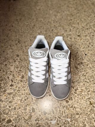 Zapatillas Adidas Campus en color gris y blanco. Un clásico para el día a día. - Diseño icónico de Adidas. - Cordones blancos. - Suela de goma.