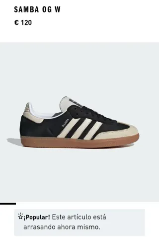 Zapatillas Adidas Samba OG W. - Diseño clásico con detalles en negro y beige. - Suela de goma. - Logo de Adidas en la lengüeta y el lateral.