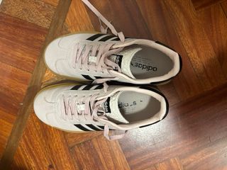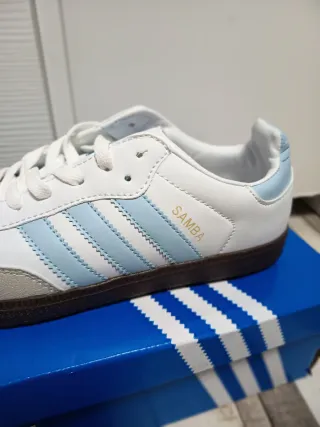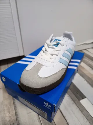 Zapatillas Adidas Samba en tonos grises y blancos. Un clásico atemporal. - Diseño icónico con las tres franjas. - Detalle de ante en la puntera y los laterales. - Cierre con cordones. talla 36 2/3 más descuentos comprando en lote #alclothescalzado
