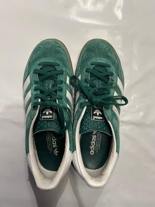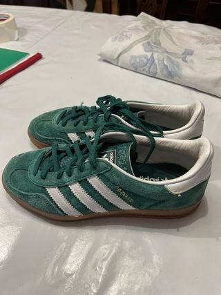 Zapatillas Adidas Gazelle en color verde con franjas blancas. Talla 36,5 En buen estado Muy cómodas y combinables, ideales para uso diario. Acepto ofertas Se vende por poco uso