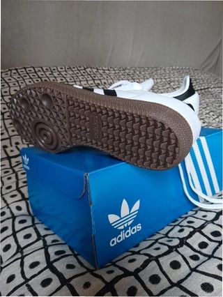 Zapatillas Adidas Samba en color negro y blanco. - Diseño icónico con las tres franjas. - Suela de goma. - Detalle Samba en el lateral. - Cualquier cosa no dudes en escribirme