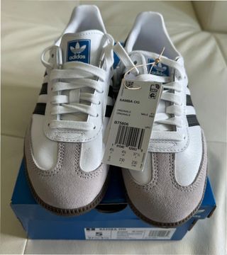 Zapatillas Adidas Samba OG en blanco nube y negro. - Diseño clásico Samba OG. - Combinación de colores Cloud White y Core Black. - Talla 38.5.