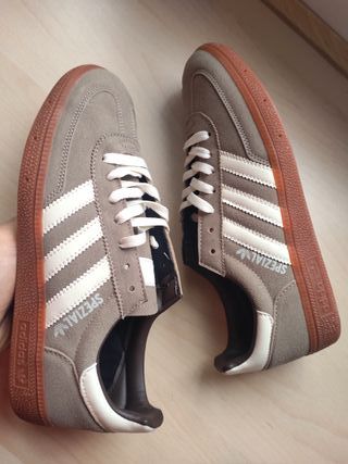 Zapatillas Spezial en tonos beige y marrón. Estan nuevas a estrenar. Perfectas para cualquier look. Envío rápido (menos de 24h). Vienen sin su caja!!! - Diseño clásico. - Detalle de las tres rayas. - Logo de Adidas y Spezial en el lateral.