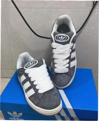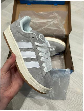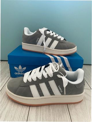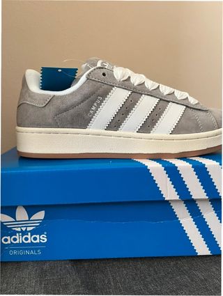 Zapatillas Adidas Campus 00s en color gris y talla 38. - Diseño clásico con las tres rayas. - Detalle de la marca en la lengüeta y el talón. - Suela de goma. - Cordones blancos.