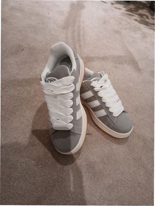 Zapatillas Adidas Campus 00s en color gris y blanco. Talla 36. - Diseño clásico con las tres rayas. - Cordones blancos. - Suela de goma.