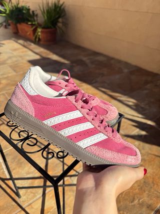 Zapatillas deportivas Adidas modelo Hand II. - Diseño en color rosa con detalles en blanco. - Materiales de ante y textil.