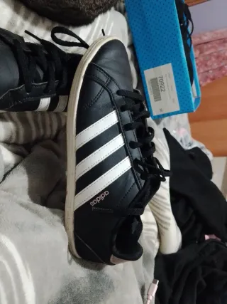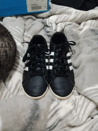 Zapatillas deportivas Adidas en color negro con detalles blancos. - Diseño clásico de tres rayas. - Cierre con cordones. Son super cómodos y muy bonitos