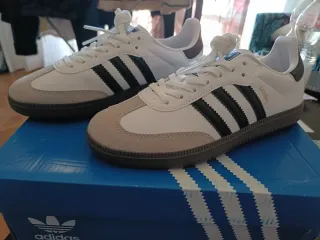 Adidas Samba VEGAN – Talla 37 – Nuevas con caja Precio negociable Vendo Adidas Samba originales, versión VEGAN (materiales sin origen animal). ✔️ Nuevas, sin estrenar ✔️ Con caja, papel y etiquetas originales ✔️ Talla 37 ✔️ Color blanco con franjas negras (modelo clásico) ✔️ Suela de goma ✔️ Muy cómodas y en tendencia Las compré y no han sido usadas. Están impecables, tal y como se ve en las fotos.