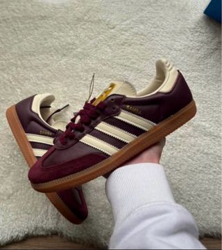 Zapatillas Adidas Samba OG en color burdeos y detalles en beige. - Modelo clásico Samba OG. - Talla 39.