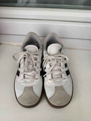 Zapatillas Adidas de niño, talla 38. Muy cómodas y ligeras, perfectas para deporte o uso diario. Están en buen estado general, con desgaste en la puntera de una de ellas (lo muestro en las fotos), pero siguen funcionando perfectamente. Suela con buen agarre y cordones en buen estado.