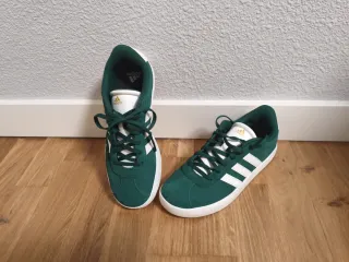 Zapatillas Adidas Campus en color verde. Ideales para un look casual y cómodo. - Son de ante. - Tienen suela de goma. - Están en muy buen estado. - Talla 38 - Tienen cordones blancos para cambiar.