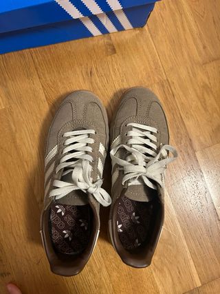 Zapatillas Adidas Samba 100% originales, un clásico atemporal con diseño icónico. Combinación elegante en tonos beige y marrón, perfecta para uso diario o estilo casual 👌✨ 👟 Parte superior en piel con refuerzos en ante ✨ Tres bandas clásicas en ante 👣 Suela de goma color caramelo con excelente agarre 🧵 Acabados de alta calidad y gran comodidad 📏 Talla: 37.5 📦 Estado: Nuevas Modelo muy versátil y siempre vigente, ideal para el día a día o para amantes de las Adidas Samba 🔥