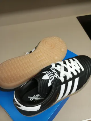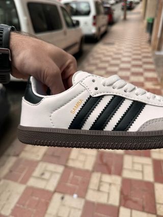 Zapatillas Adidas Samba en color negro. - Diseño clásico con detalles texturizados. - Cierre con cordones. - Suela de goma. No tengo la caja