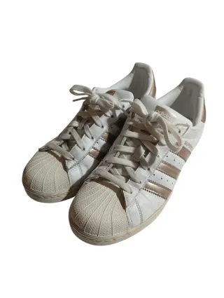 Zapatillas Adidas Superstar para mujer en talla 39.5. Un clásico reinventado con un toque de color. - Diseño icónico de las Superstar. - Detalles en dorado y blanco. - Cierre con cordones. Óptimo estado