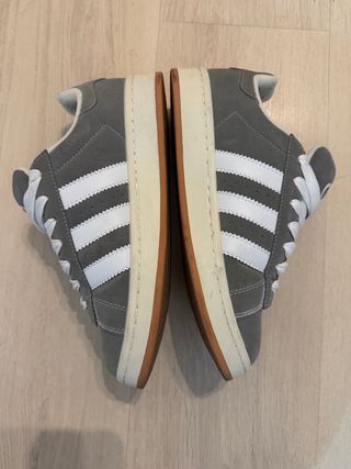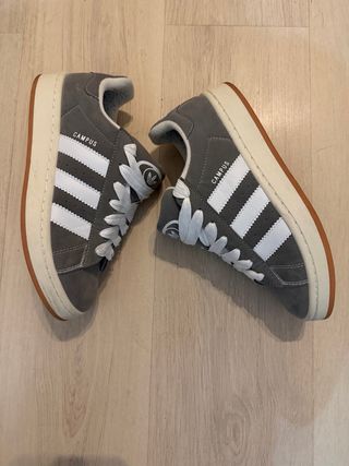 Zapatillas Adidas Campus 00 en color gris y blanco. Diseño de ante y cordones blancos. Se han usado muy muy poco porque son un número mas grande de lo necesario.